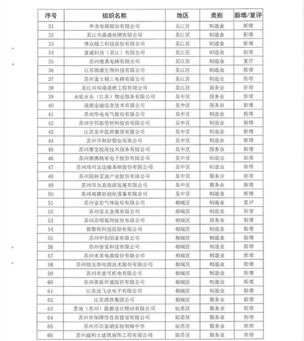 根據(jù)《蘇州市質量獎管理辦法》和《關于做好2020年蘇州市質量獎申報工作的通知》文件精神,經(jīng)申報組織自愿申請、資格審查、材料審查、現(xiàn)場評審、蘇州市質量獎評定委員會審議通過等步驟,擬評定江蘇永聯(lián)精筑建設集團有限公司等87家企業(yè)獲2020年蘇州市質量獎。現(xiàn)將擬獲獎企業(yè)名單(詳見附件)予以公示,接受社會監(jiān)督并征求意見。如對公示名單有意見或建議,請于2020年10月13日前書面向蘇州市質量獎評定委員會辦公室提出,所提意見或建議需使用真實姓名,并提供聯(lián)系方式和相關依據(jù)。